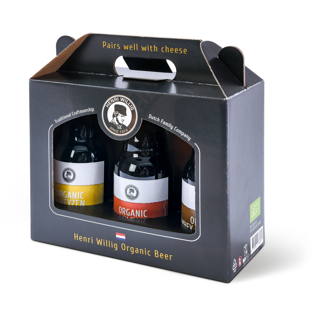 De set bevat drie flesjes van 33 cl en is een smakelijk cadeau om te geven of te delen. Ideaal voor een gezellige borrel of om samen te proeven bij een plank met Henri Willig kazen.