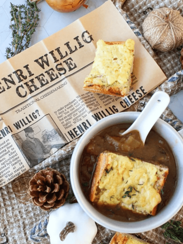 Nichts geht über eine warme Schale cremiger Zwiebel-Pilzsuppe an einem kalten Tag, serviert mit knusprigem überbackenem Baguette. Die Suppe kombiniert karamellisierte Zwiebeln mit Kastanienpilzen zu einem reichhaltigen, milden Geschmack, den man sofort genießt. Das Baguette mit Frischkäse und geschmolzenem Bockshornkleekäse macht das Gericht besonders, während das schwarze Knoblauch-Garum eine tiefe, herzhafte Note hinzufügt. Dieses Rezept für Zwiebel-Pilzsuppe ist einfach zuzubereiten und perfekt zum gemeinsamen Genießen, sei es als Mittag- oder Abendessen an einem gemütlichen Abend zu Hause.