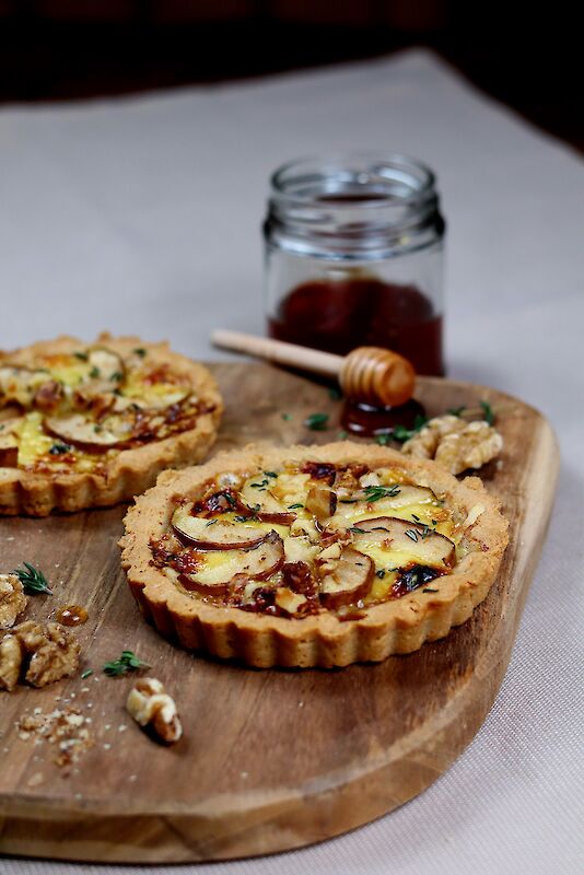 Sometimes combinations of ingredients simply fit perfectly together. The roasted aroma of walnuts, the spicy warmth of fenugreek cheese, a touch of honey, and the sweet juiciness of pear. Together, they form an irresistible tartelette filling. These savory tartelettes are the ultimate autumn pastry, easy to serve and perfect as a lunch, snack, or starter.