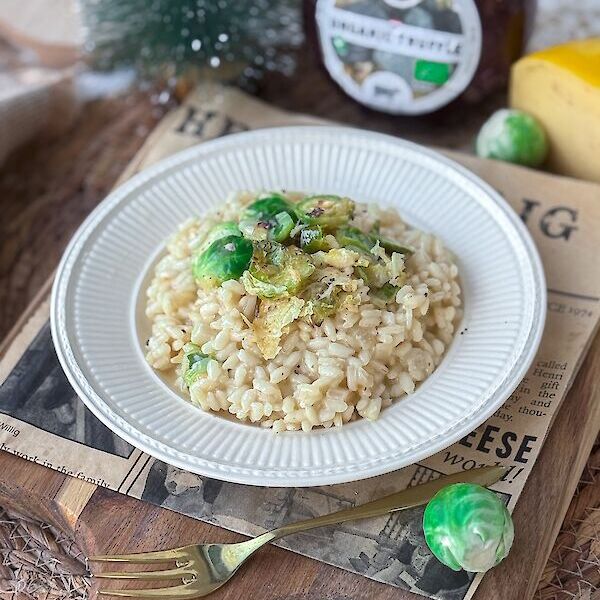 Le risotto, c’est le roi du réconfort. Dans cette recette, on associe la saveur raffinée d’un fromage à la truffe à un vrai légume d’hiver : le chou de Bruxelles. En le finement éminçant, il devient plus doux et se marie parfaitement avec la crème du riz.